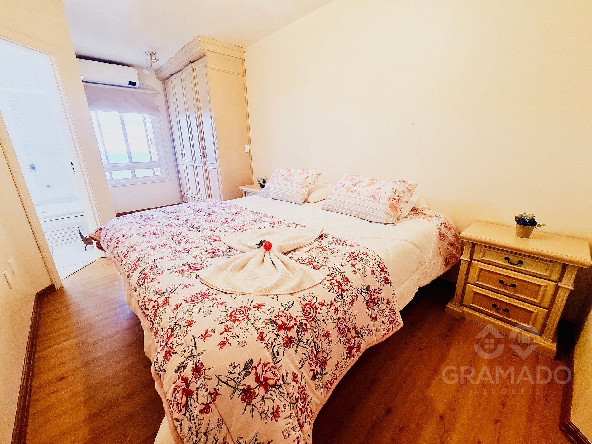 Ambiente elegante e moderno, pensado para casais ou famílias;