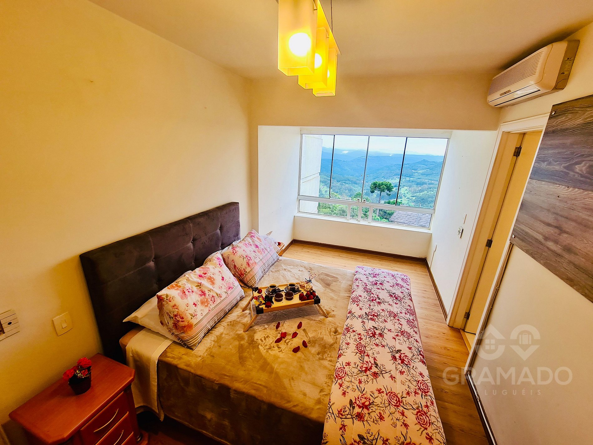 Acorde com a vista mais deslumbrante de Gramado! Apartamento com 2 suítes, hidro privativa e ambiente sofisticado ao lado do centro. Conforto e exclusividade para momentos inesquecíveis