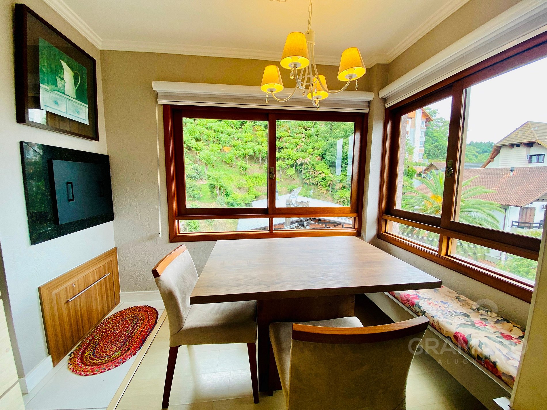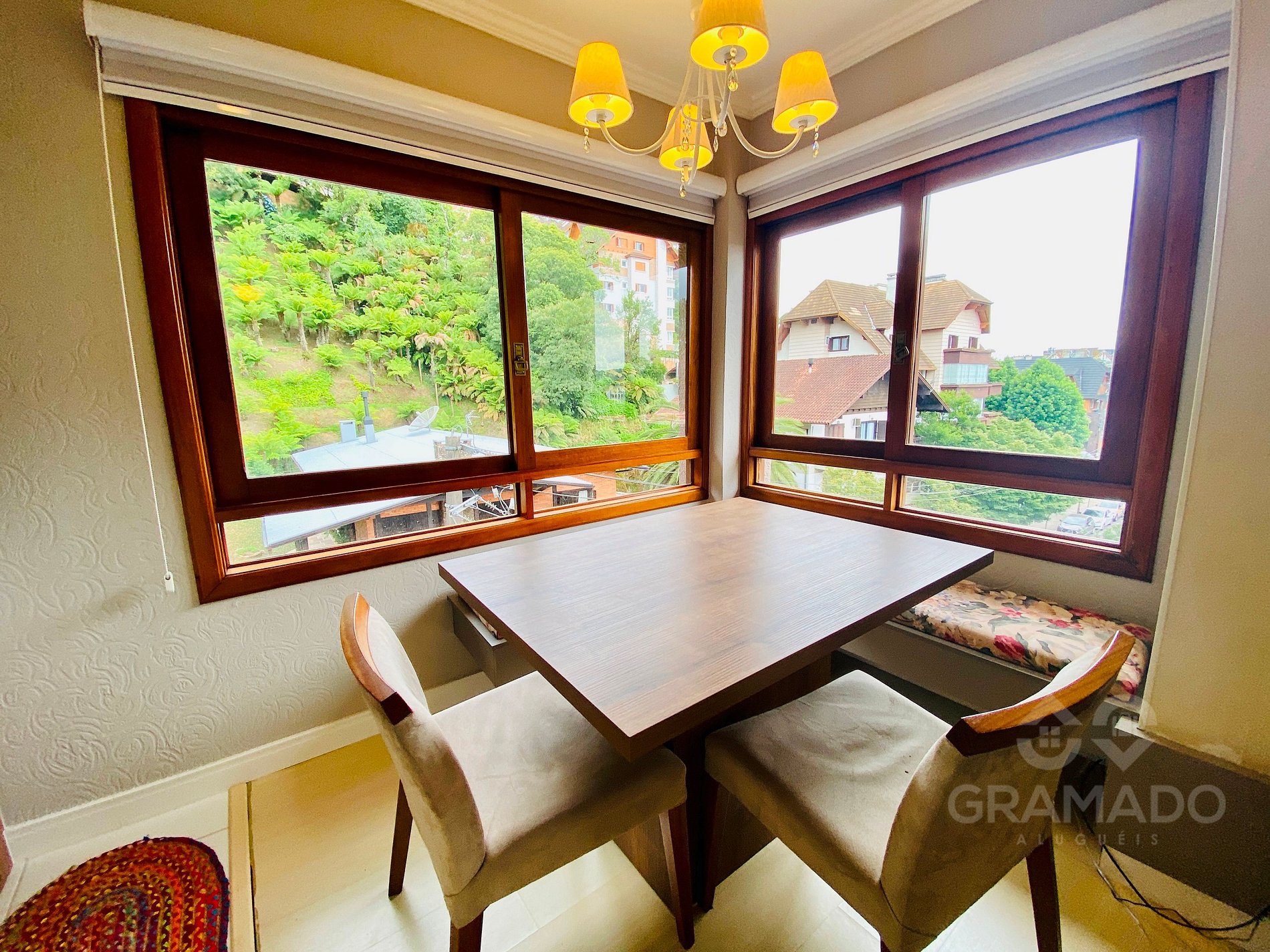 Apartamento de alto padrão com 2 dormitórios e elevador, localizado no Centro de Gramado, com vista para área verde preservada e a poucos metros da Rua Coberta. Totalmente climatizado e equipado com TV, internet Wi-Fi, eletrodomésticos e utensílios de cozinha. 1 vaga de garagem disponível.