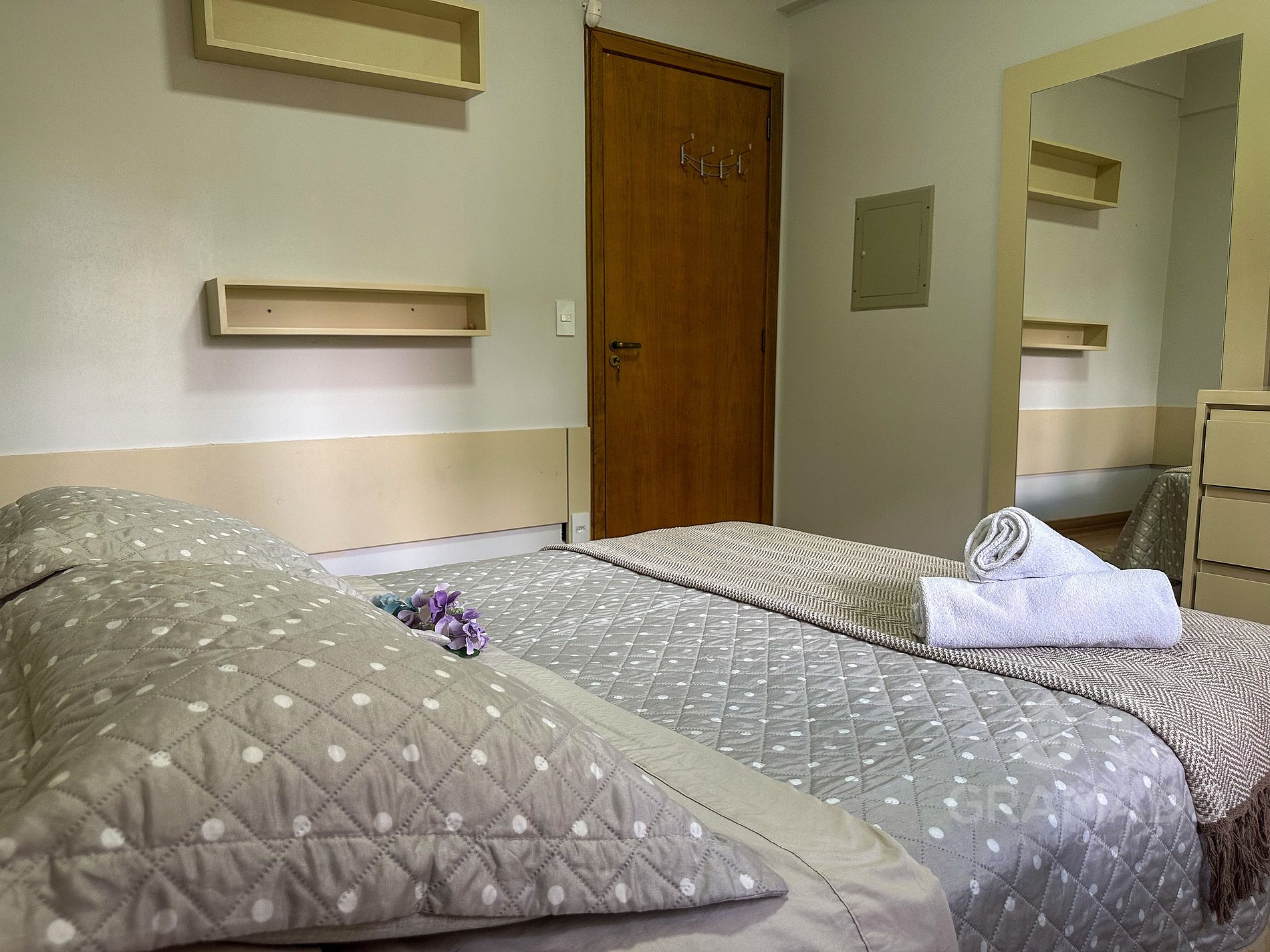 2 dormitórios, incluindo uma suíte confortável e decorada com elegância, ideal para momentos de descanso.